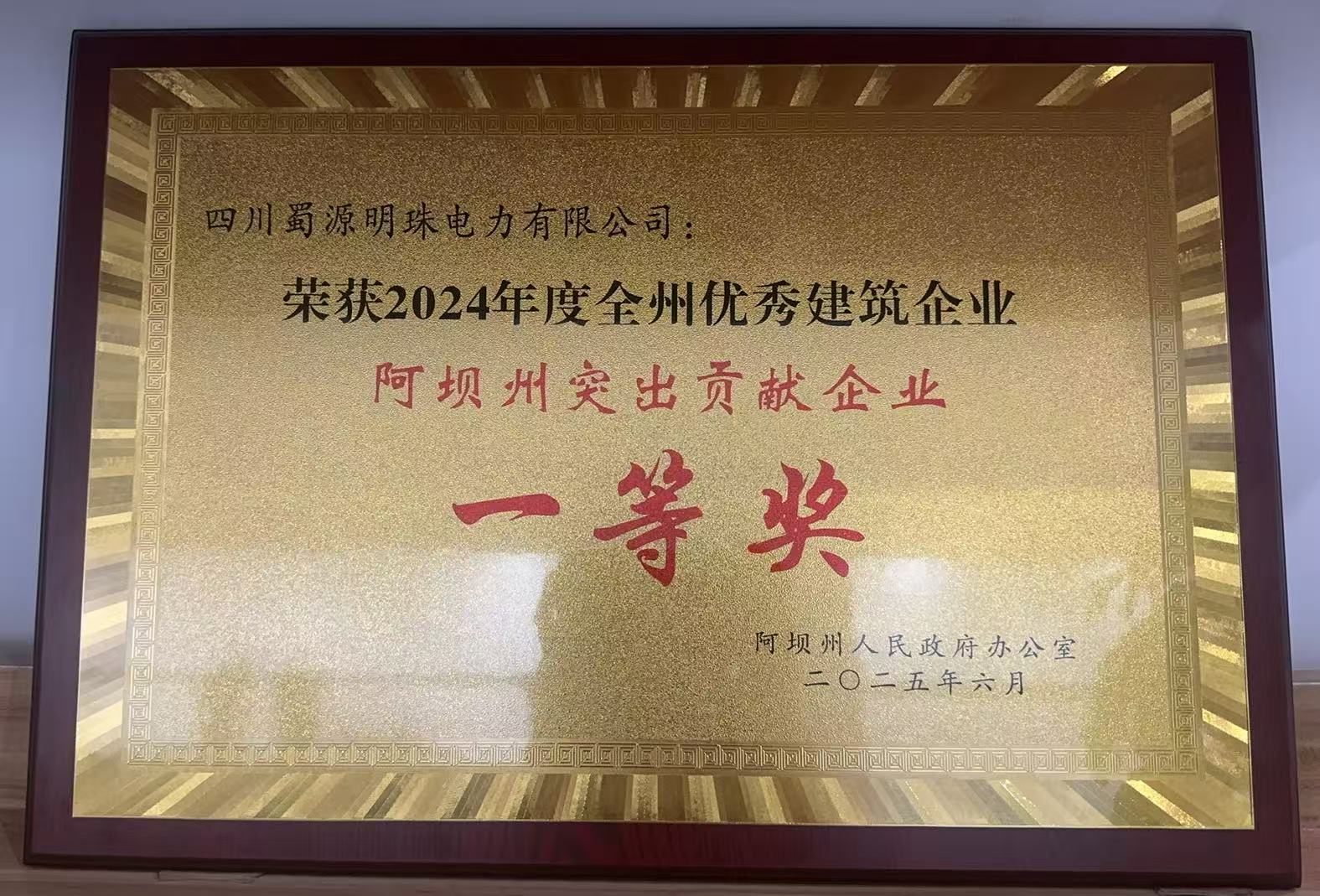 祝贺四川蜀源明珠电力有限公司荣获2024年度全州优秀建筑企业阿坝州突出贡献企业 一等奖